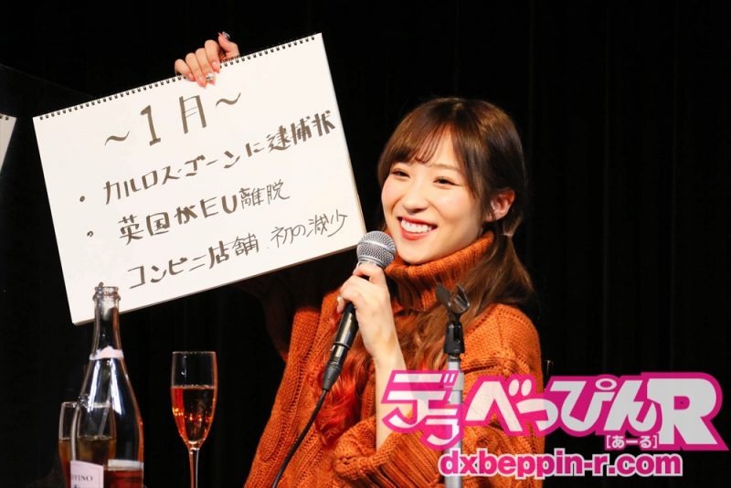 その後の月も様々な事象を語り、12月は今回のイベントが開催。また、あべみかこちゃんが開設するYouTubeチャンネル「あべみかこチャンネル」の登録者数が10万人に達成し、それを祝した金箔入りシャンパンも贈られ、会場にいたファンと喜びを分かち合いました。