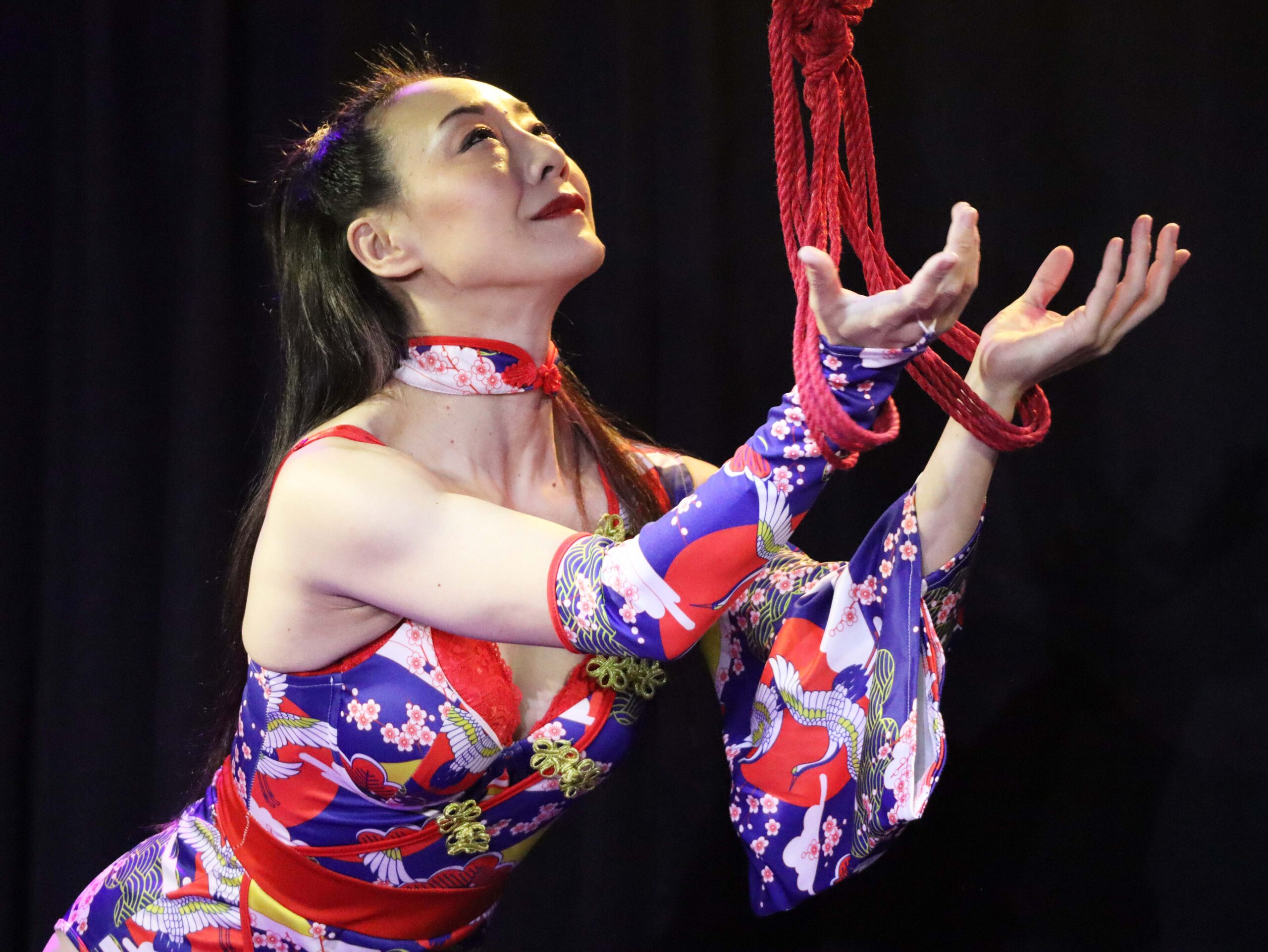 イベントはわかみほさんのステージで幕を開けました。自吊りでの空中パフォーマンスは、ため息が出るほどに美しくエロティック。その表現力には圧倒されてしまいます。