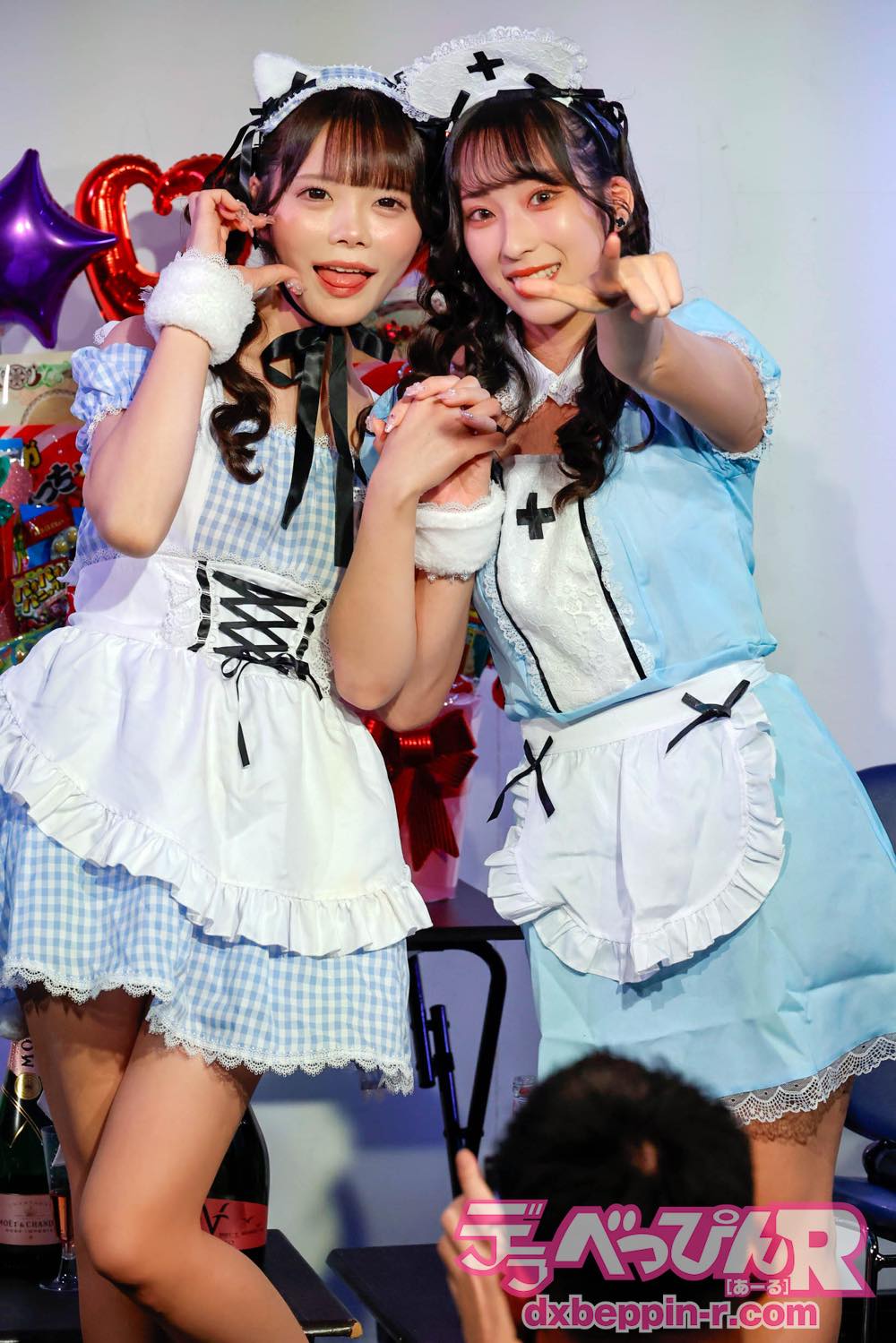 玲衣ちゃんはキュートなネコ耳メイド姿で、みのりちゃんはナースメイド姿で登場。2人ともファンからシャッターを浴び、会場はプチ撮影会状態になりました。