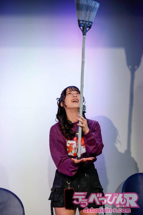 ほうきを掌に乗せてバランスを保つ時間を競うゲームです。司会者が「棒を勃てるのは得意ですか?」と、棒をチ●チンに暗喩した質問を投げかけると、みのりちゃんはその暗喩が分からず、「苦手です」と真面目に回答(笑)。