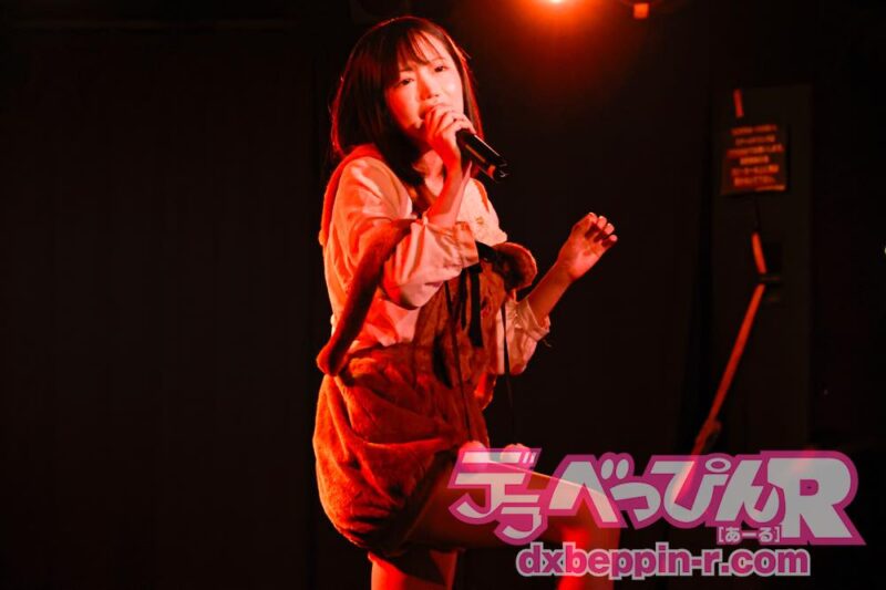 楽演祭ライブ初登場のややちゃんは、かわいらしいくまの着ぐるみ姿でステージに現れ、会場の視線を一気に集めました。キュートなルックスに加え、独自の「動」と「静」を行き来するステージングは圧巻。同ライブ初とは思えない堂々としたパフォーマンスで、トップバッターの大役を見事に果たしました。