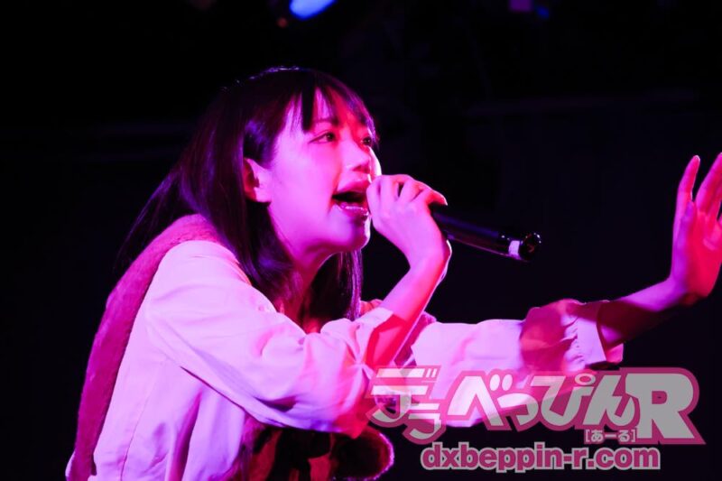 元アイドルの経歴を持つみゆちゃんは、王道のアイドル曲で会場を明るく照らしました。キラキラとしたステージングと、熟練されたパフォーマンス力はまさに本物。同ライブでは持ち曲数が限られますが、それを理解したうえで、全曲が盛り上がれる選曲をしてくるあたり、プロ意識の高さが光ります。