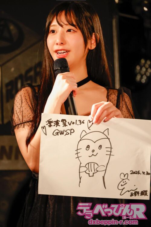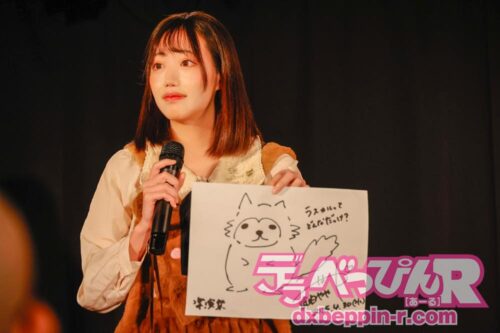 ライブ中盤には、おなじみ「お絵描きコーナー」が開催され、出演者それぞれが「あらいぐま」の有名キャラクターを描きました。出演者が描いた絵を見て、笑いが起きたり、意外な画伯が現れたりと大盛況でした。さらにそのイラストとサイン入り色紙がもらえるじゃんけん大会も行われ、会場にはアットホームな一体感があふれていました。