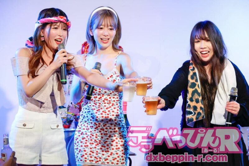 司会の2人とも「めっちゃ呼びたかった」と大歓迎。大量のドリンクやおつまみが贈られ、のぞみちゃんが「今日はベロベロになるまで飲みましょう!」と音頭を取り乾杯。本格的にイベントがスタートしました。