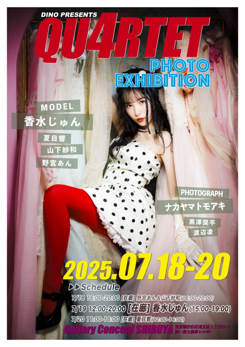 老舗AVプロダクション・DINOが、7月18日~20日の3日間にわたり、東京・渋谷のGallery Conceal Shibuyaにて「DINO presents写真展『QU4RTET』」を開催しました。