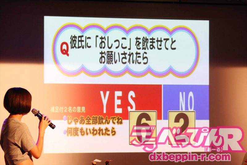 - 森保さなちゃんがトーク中にもかかわらず、自由にシャンパンを開けトークを妨害するきみと歩実ちゃんとあけみみうちゃん。怒った森保さなちゃんに土下座して謝罪する2人