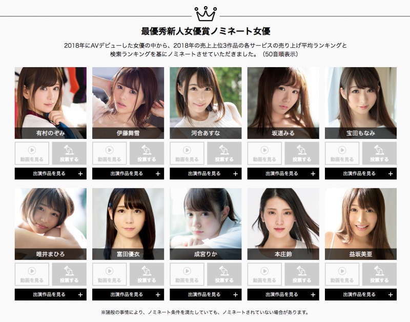今年は昨年とはガラっと変わって、9月以降デビューの女優さんが1人も選ばれていません。やはり上半期、年初デビューの女優さんはセールス算定の対象となる期間が長いため有利というのは否定できないのかも知れません。