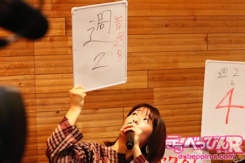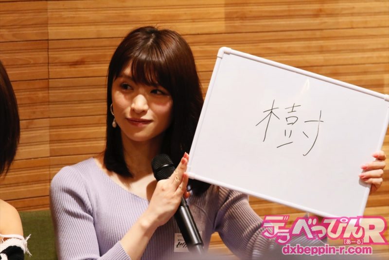 川上奈々美ちゃんは「星」。「スターになりたいです。今年は頑張っていきたいと思います。映画はもちろんだけど、AVでもひとつの灯りをともしたい。川上奈々美のAVはこれというクオリティを目指して撮っている。それをみなさんに見て欲しい。星になりたいと思います」と志高い表明をしました。