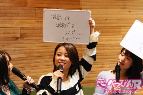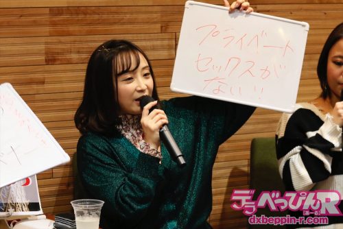 琴井しほりちゃんは「あまりエッチをしていない時」と回答。これには「しほりちゃんのAVを見たら喘ぎ声がすごかった。隠れ野獣だよ」とコメントする川上奈々美ちゃん。後輩の作品もしっかりとチェックしています。