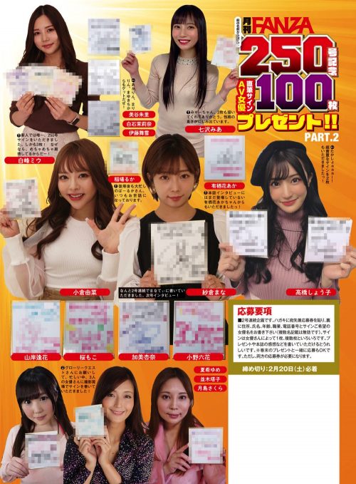 前回に引き続き、250号記念!AV女優直筆サイン100枚プレゼント【PART2】も開催!