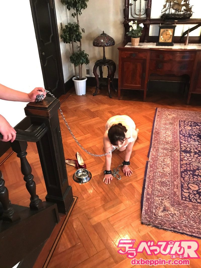 撮影は順長に進んで、ゆうちゃんの首に首輪が装着される。しかも四つん這い。メルちゃんも見てるけど、メルちゃんどう思ったかな?