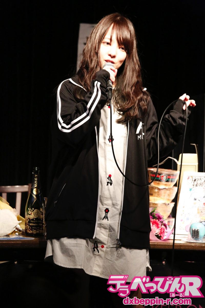 一人となったステージでは「月イチでみんなの前に出てこられる機会があるのは恵まれている。イベントをできるだけで幸せ」、「着ているジャージは『ヴィレッジヴァンガード』で発売される」などトーク。