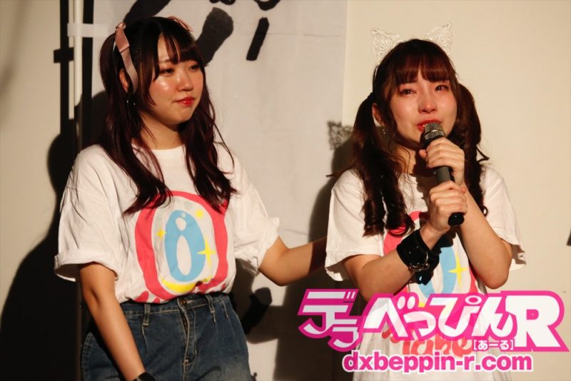 #メイキットだけでなくセクシー女優としての活動も卒業するあけみみうちゃんは、「かかわってくれたメーカーさん、事務所、関係者のみなさん、メンバーのみんな、本当に楽しかったです。一人でなにかをするのが好きなタイプだったけど、みんなと向き合って仲良くなれて、私の人生が変わったと思います。私の人生が変わった2年間だと思います」と、涙を流しながらコメント。