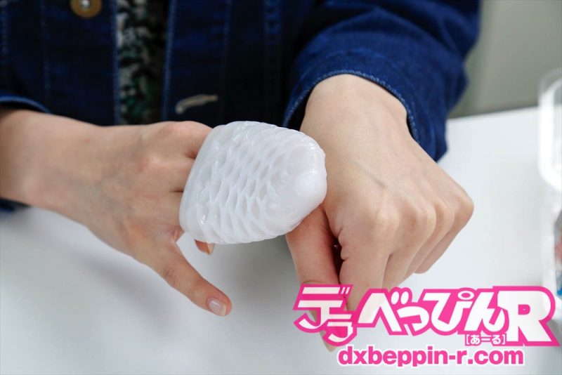 真中 中の突起部分が何種類もあります。このワンダーパッケージにはカールとか、チューブとか、メッシュとか6種類入っています。TENGA EGGをディルドにかぶせてしごいたことがあるんですけど、見た目が小さいから亀頭部分しか刺激しないかと思っていたら、根元までグ~ンと伸びるんです。だから、しごきやすいです。