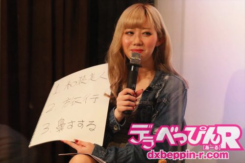 セクシー女優アイドルグループ「#メイキット」の一時解散以来、久々にレフカダ新宿に登場した恋ちゃんは「(ファンと)会えなかったからね。久しぶりでひざが震えている」とコメント。