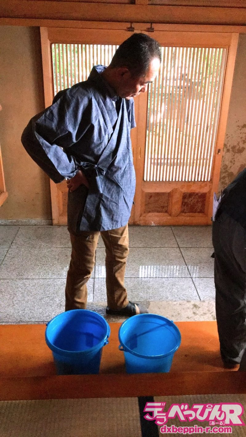 早速、始まった撮影現場は玄関での水浴び。え? 今日って凄い寒くない? 現場にはストーブも点いてるし、のんたんもバスローブにいっぱいホカロン付けてる位に寒いよ? そんな中、水が入ったバケツが何個も運ばれてる。想像するだけで寒い。しかも、どうやら全裸で浴びるらしい。のんたん大丈夫か!?