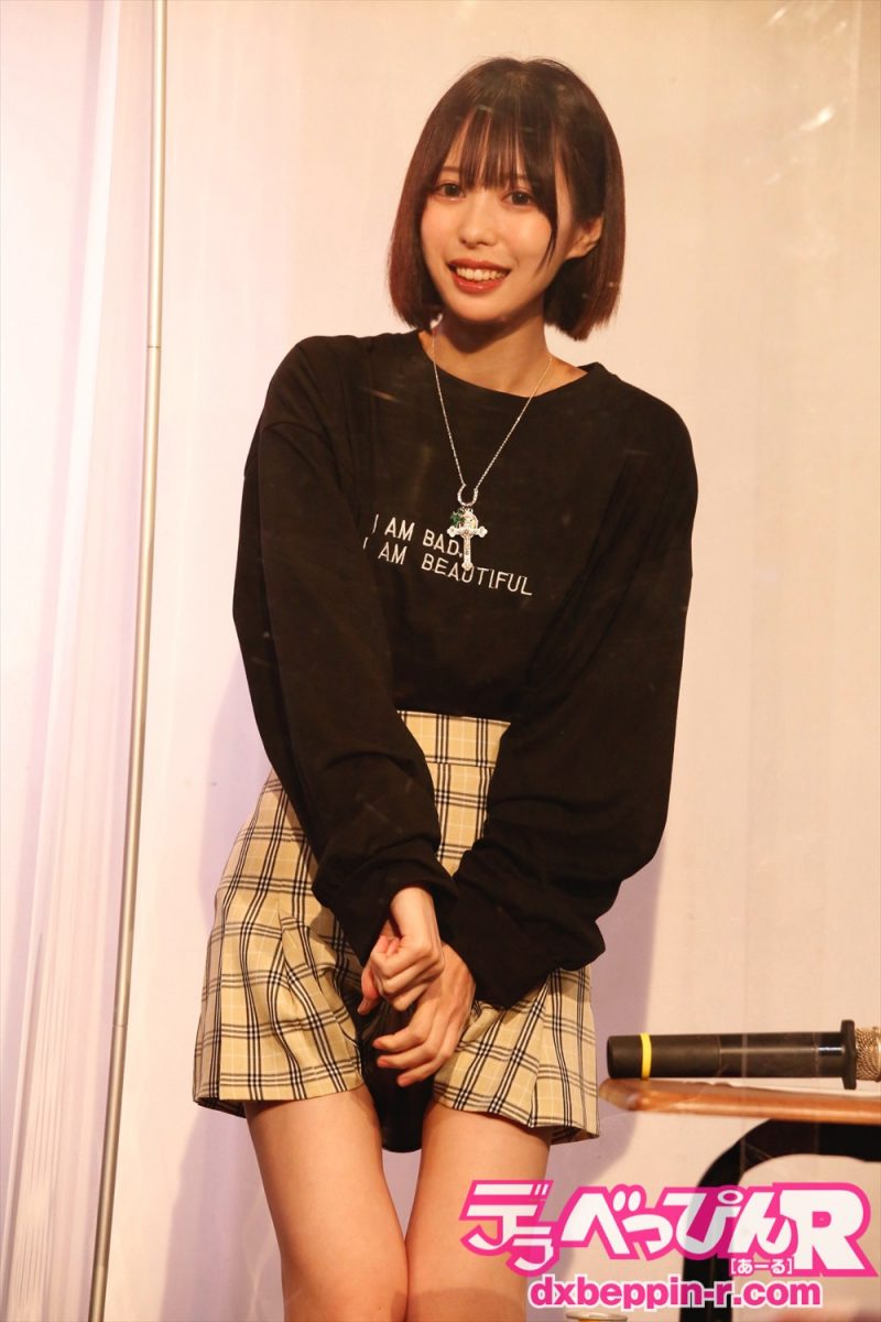 好きなタイプは「自頭のいい人。テンポよく話せる人」、エッチな得意技は「穴を二段階で締められる」、ファンからの差し入れで嬉しいものは「家電とか実用性があるもの。自分で買わないような機能的なもの」、好きな男性器の形は「外が『コンコン』って鳴りそうなくらい固い人。細身でがっちりしている形が好き」と、一気に紹介してくれました。