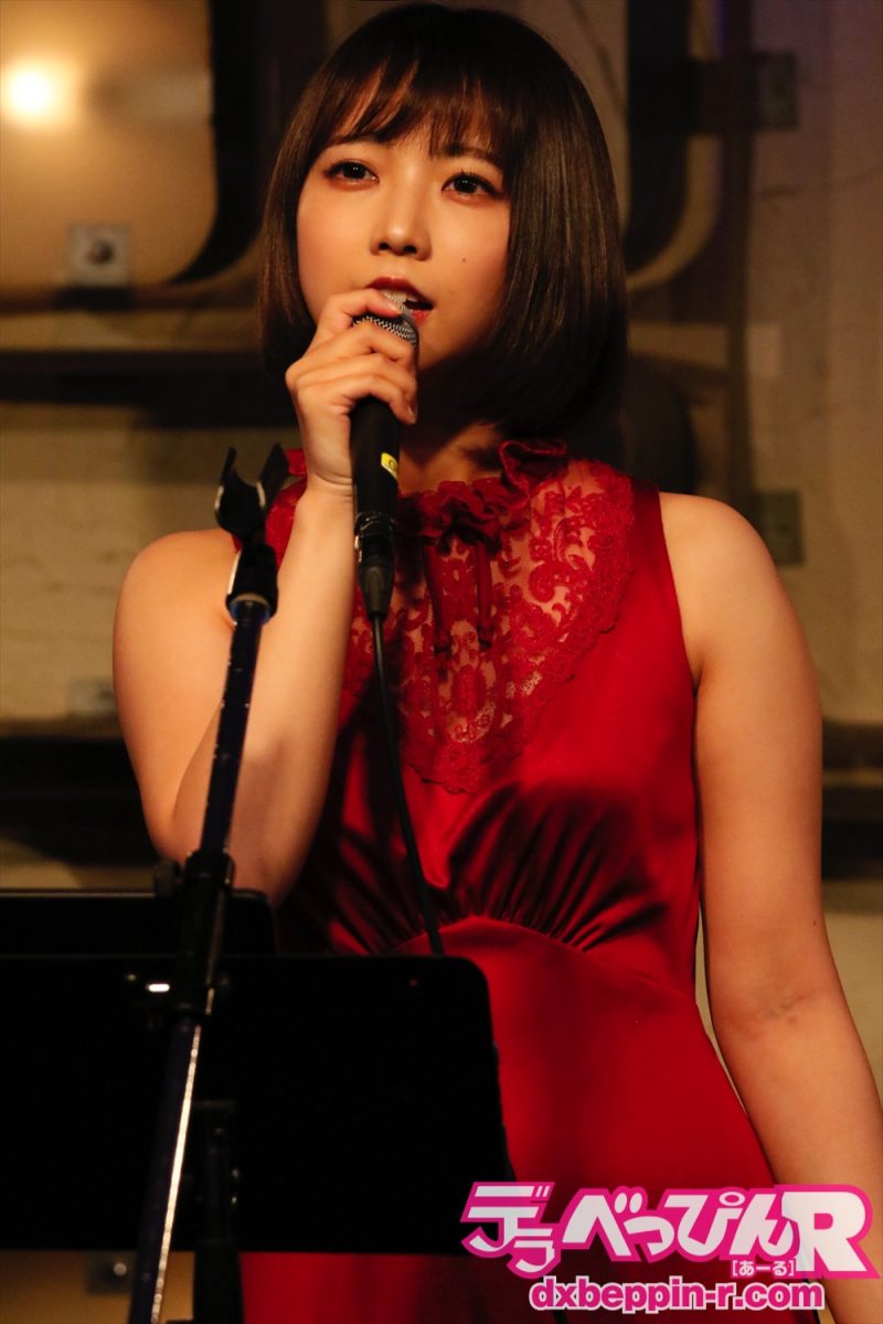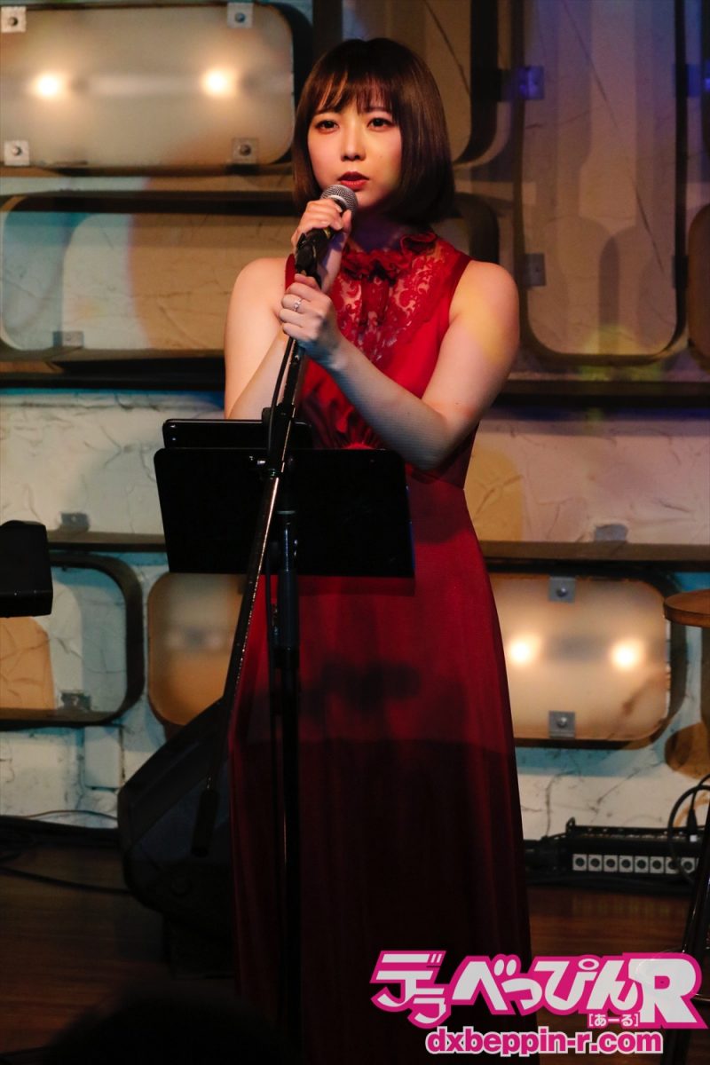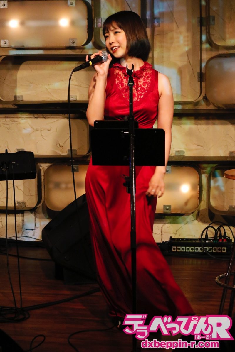 4曲目はジャケットを脱ぎ深紅のドレス姿となり『カントリーガール』(谷山浩子)をしっとりと、続けて『MAY』(斉藤由貴)、『I LOVE YOU(尾崎豊)を切なく歌った。特に『I LOVE YOU』では、まこりん独自のブレスとアクセントがあり、これまで聴いたことがない新鮮な『I LOVE YOU』となり聴くものを感動させた。