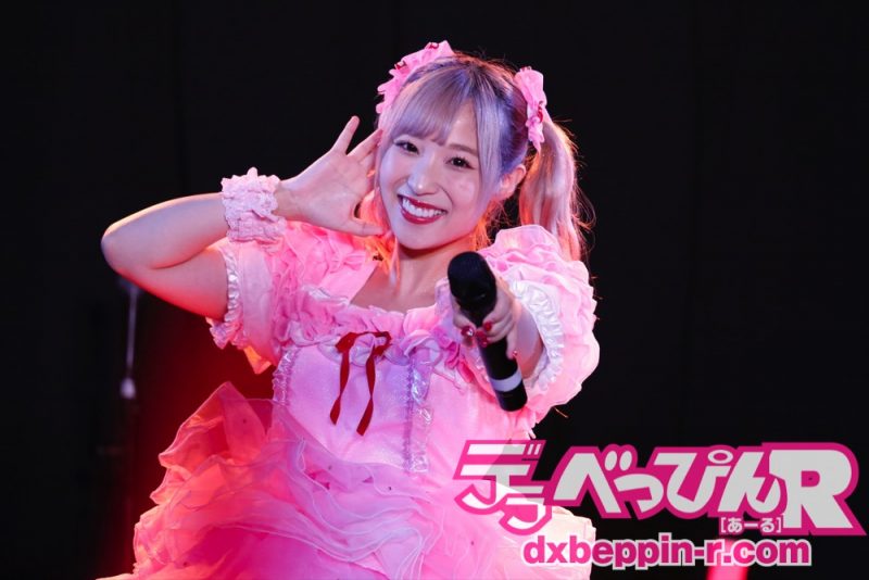 栄川乃亜ちゃんは「久しぶりに2曲で緊張している」とオリジナル曲の『世話焼きガール』と『Kazamidori』を披露。フリフリのアイドル衣装を身にまとい、かわいい振り付けで観客を虜にします。特に『Kazamidori』のクルクルの振り付けではサイリウムが客席のあちらこちらから振られ大盛り上がりでした!