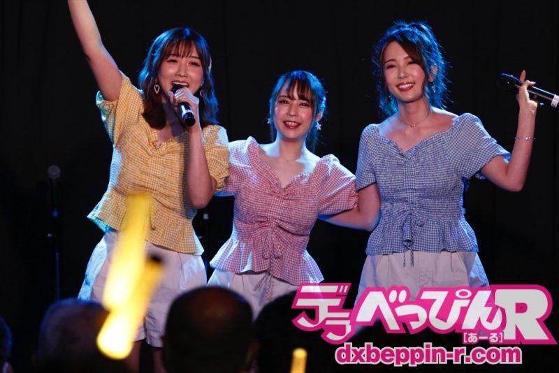 トリを飾るのは3年ぶりの結成となるT♡プロジェクト(波多野結衣ちゃん、大槻ひびきちゃん、佳苗るかちゃん)の3人。これまでのライブの熱狂を引継ぎ、その熱さをさらに加速させます。定番のアニメソングを息の合った振り付けで歌うと、会場は最高潮を迎え、見事にトリの重責を果たしました!