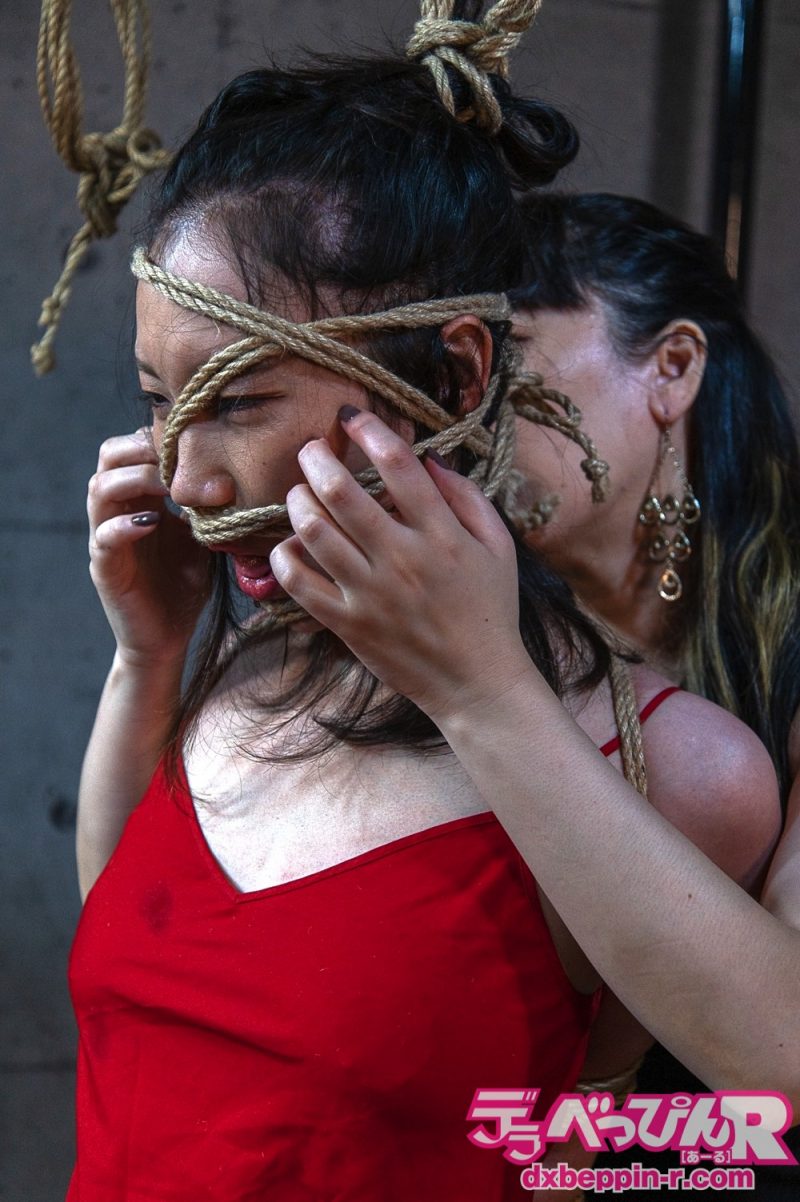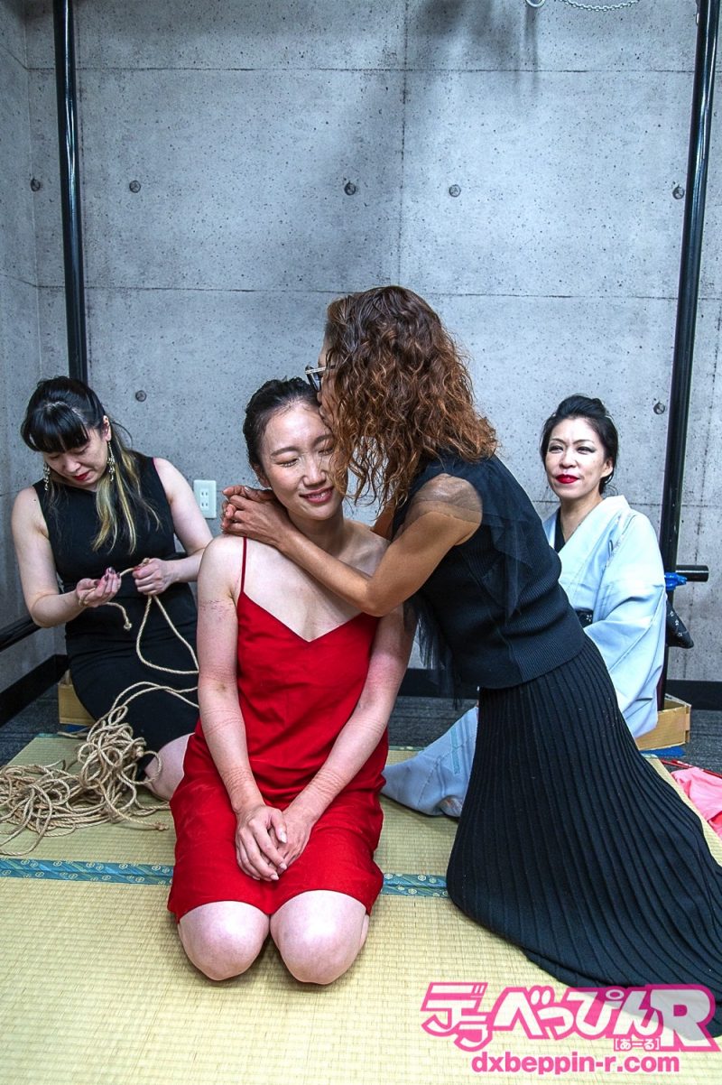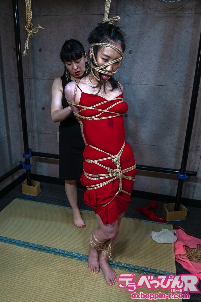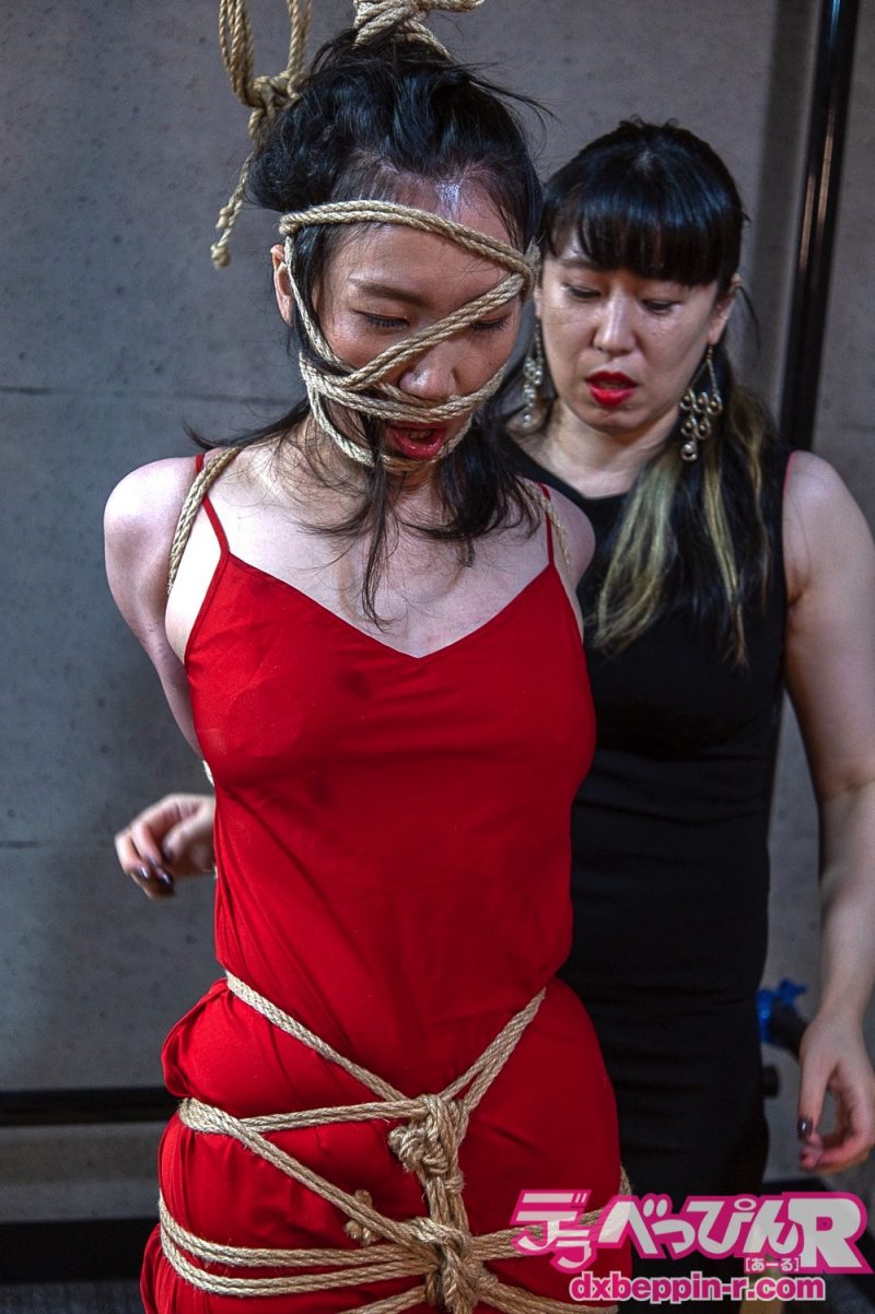 受け手のあかねちゃんはレッスンで欲求不満バリバリになってるから目がギラ付いてる。縄好きのモデルさんがレッスンモデルをやると、ビシッと縄が決まらないから悶々するらしい。なので緊縛撮影会はレッスン後のご褒美みたいなもん。