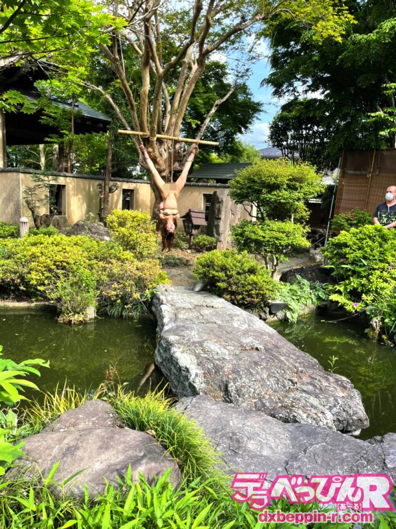 岬あずさちゃんがロウソク責めで大絶叫&真っ昼間の日本庭園で逆さ吊りに……。