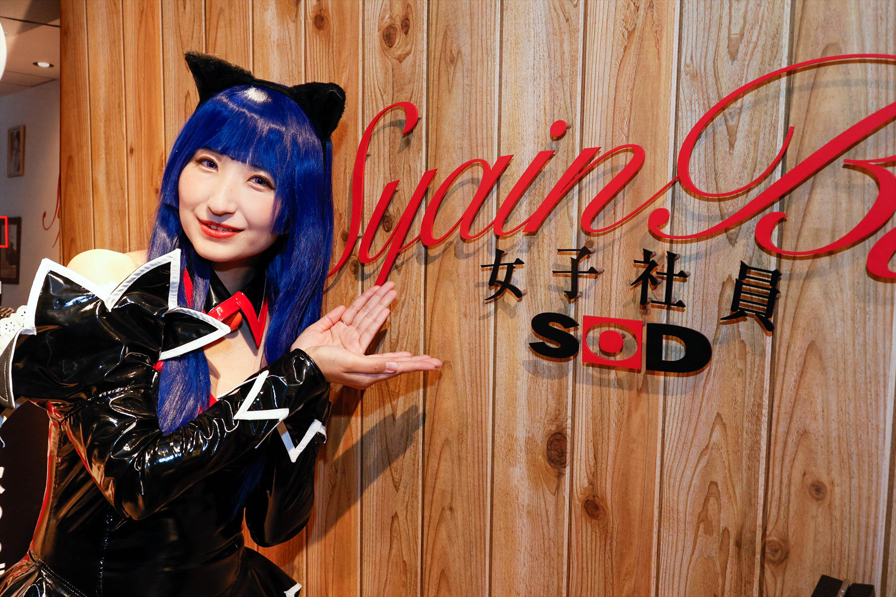 今回のイベントコンセプトを聞くと、「普段エッチなコスプレをしているコスプレイヤーさんをSyain Barに招きました。私はコスプレイヤーではないんですけど、SODの代表として参加しました。今回は乾杯や撮影タイムがあるイベントとなっています」とコメント。