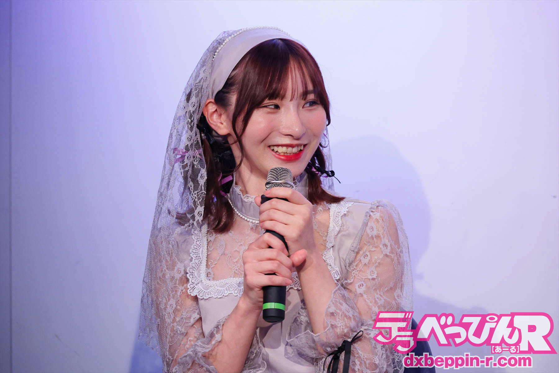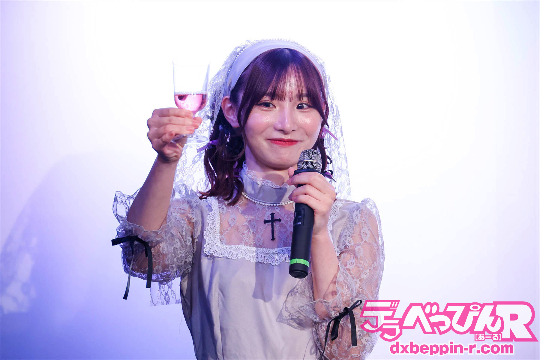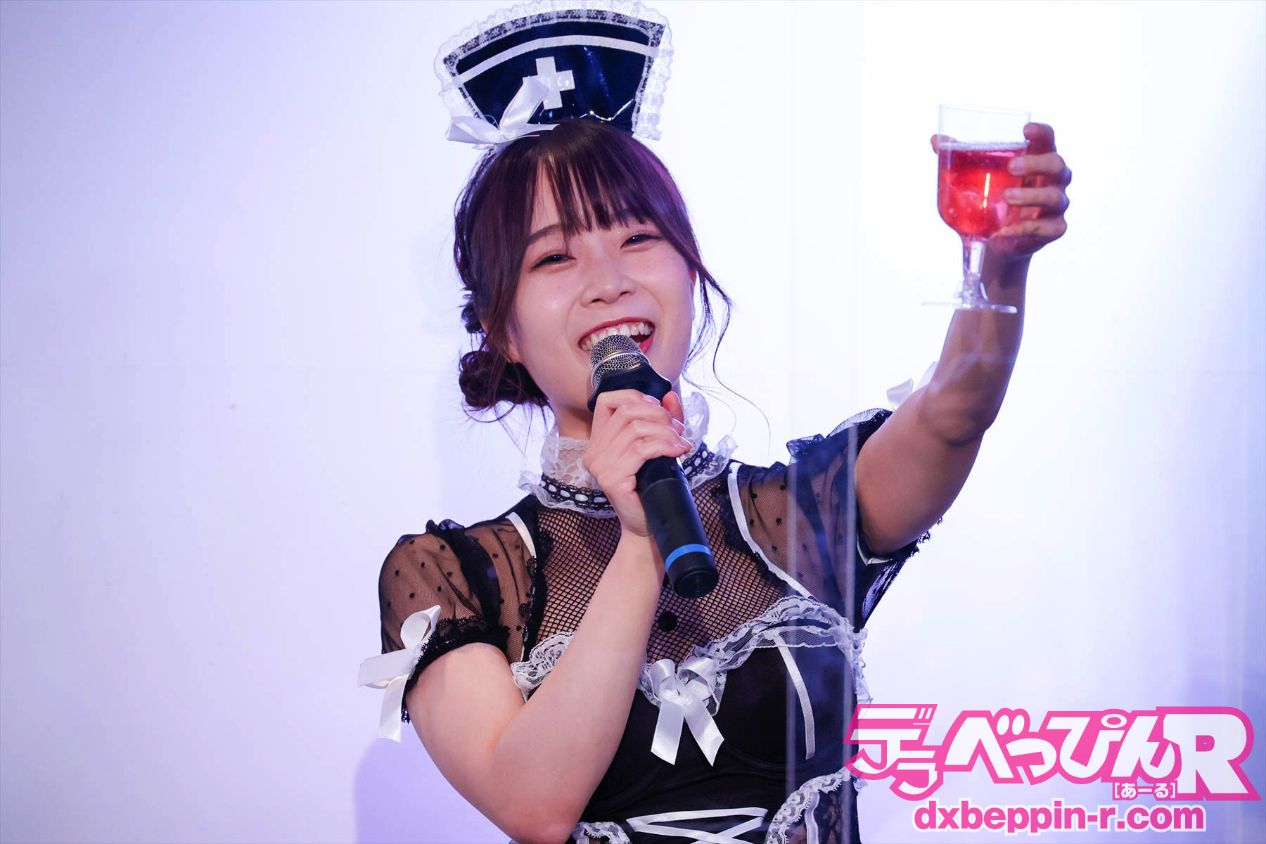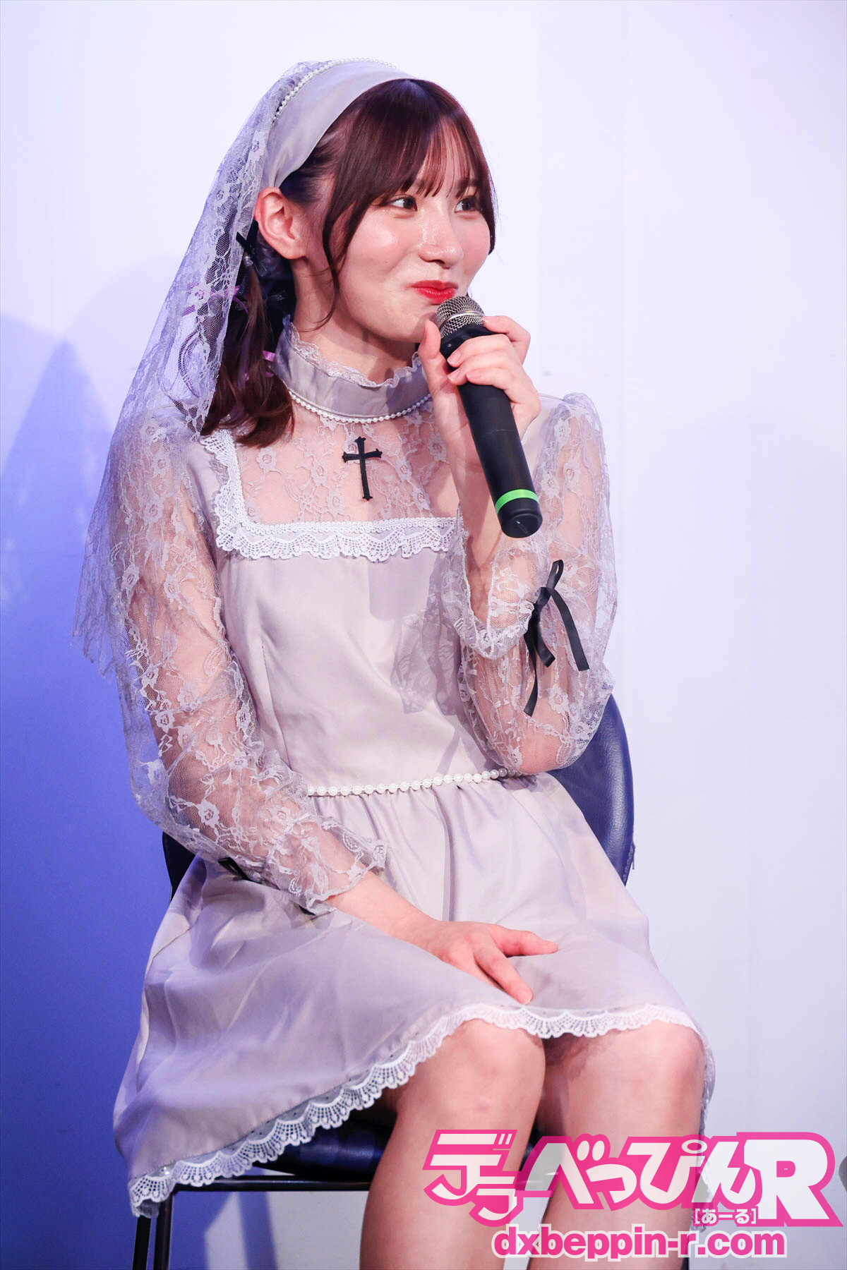 この日はハロウィンなのでゴシックナース姿で登場したまおちゃん。「デビューから1年半経って自分のイベントが持てて嬉しい」と喜びます。ゲストのめるちゃんを呼ぶと、シスター姿で登場しためるちゃんは、「まおちゃんと普段から仲良しでゲストに呼んでもらい光栄です」とコメント。