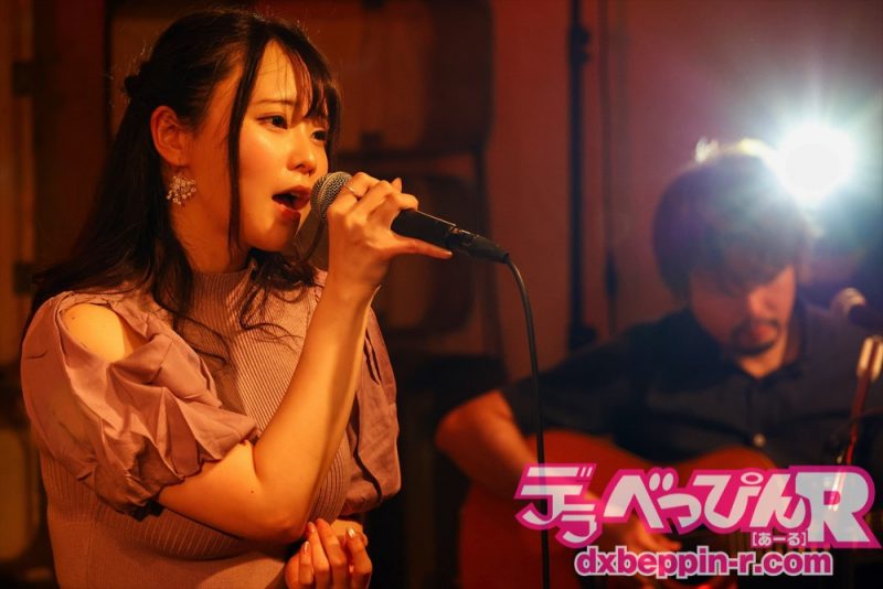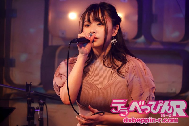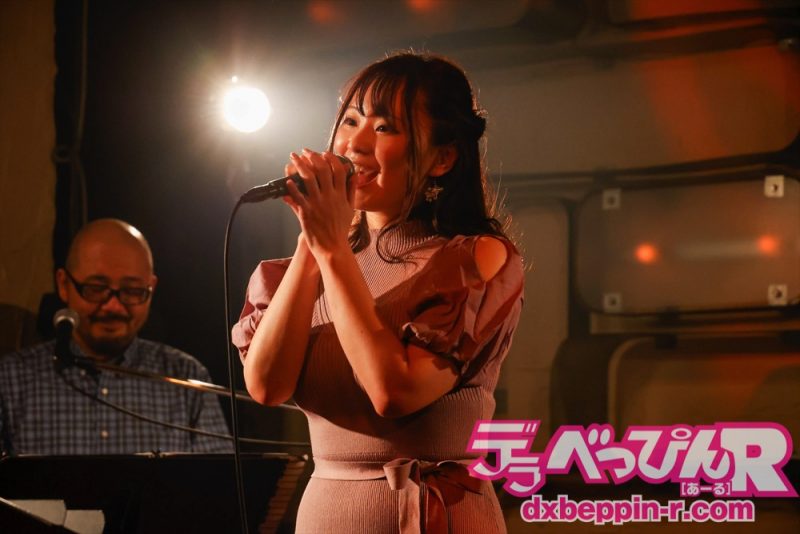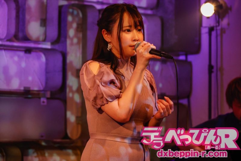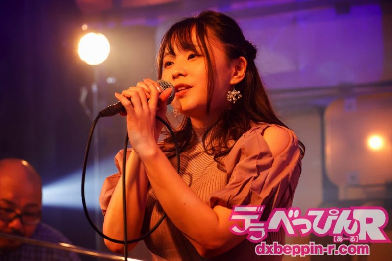 会場にはスモークがたかれムード満点の中、ふみかちゃんが登場します。1曲目は『ベイビーな彼にニコラシカ』(the mother’s booth)を前回のライブと変わらない素晴らしい声量と迫力ある歌声で聴かせてくれます。