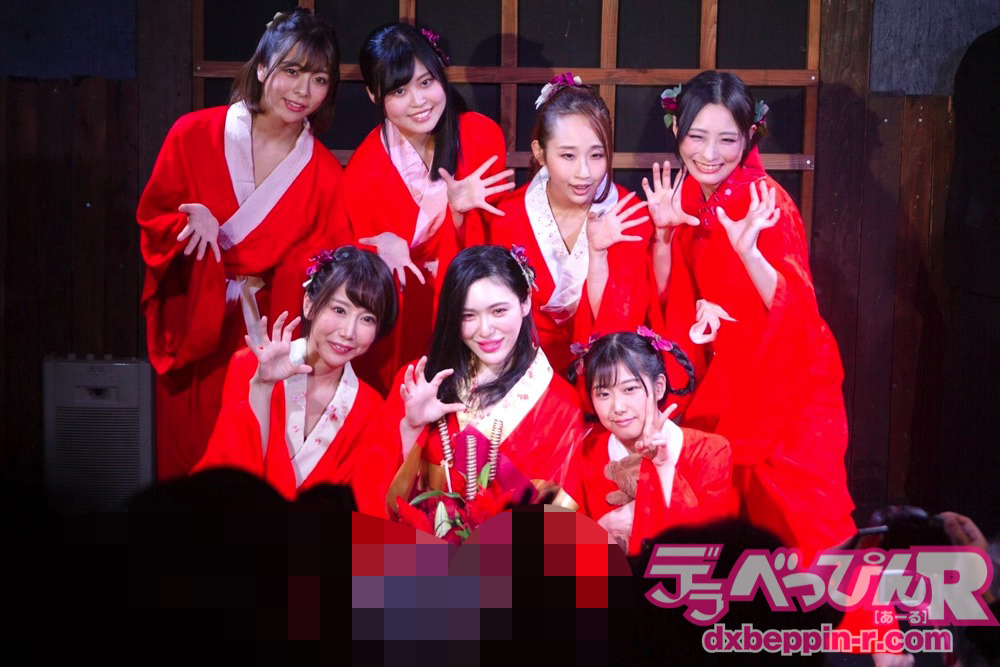 M女軍団リーダー神納花さん、美咲結衣さん、岬あずさちゃん、望月あやかちゃん、前乃菜々ちゃん、最上さゆきちゃん、塩見彩ちゃんの7名。