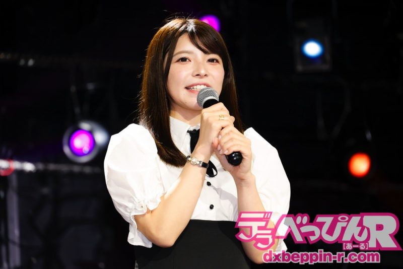 会見では司会進行のシャバダバふじさんから「おかえりなさい!」とステージに迎えられると、「ありがとうございます」と爽やかな笑顔で挨拶した亜衣ちゃん。続けて「あらためまして上原亜衣です。お忙しい中、お集まりいただきありがとうございます。よろしくお願いします」とニッコリ。