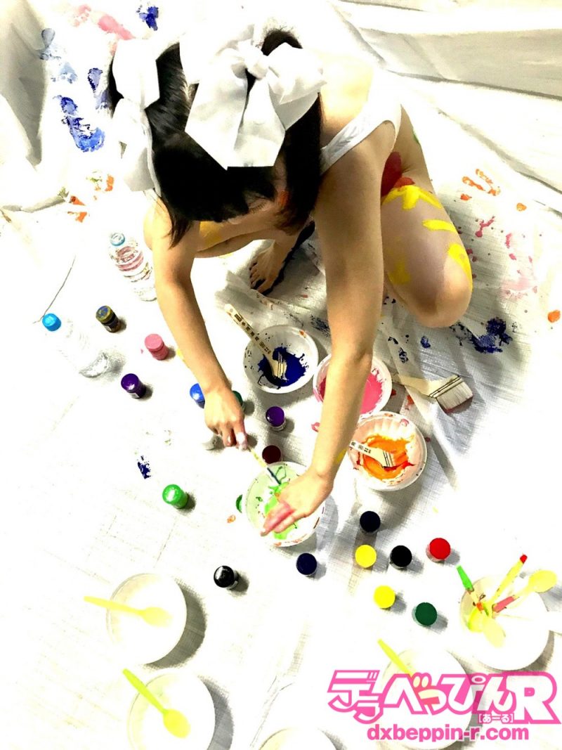 頭の天辺から足の爪先までたっぷりと絵の具を浴びて、もうこれ以上汚せる所も無いじゃんって所で撮影は終了。