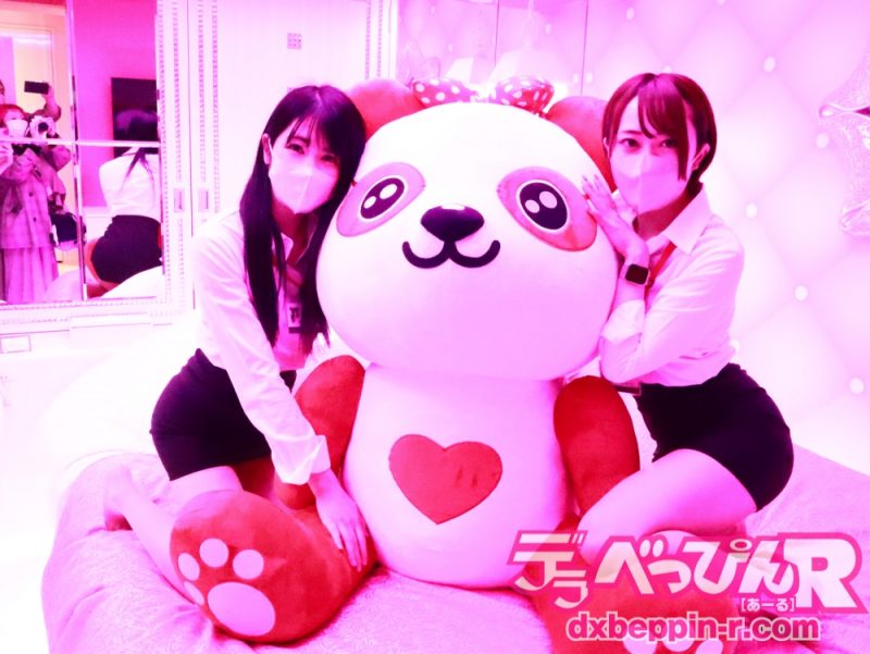 続いて向かった先は、ピンクを基調にしたプリンセスルーム。そこには、公式キャラクターのパンダ“あんあん”の巨大なぬいぐるみとともに、SOD女子社員の泡香ましろと美波亜美の姿が!