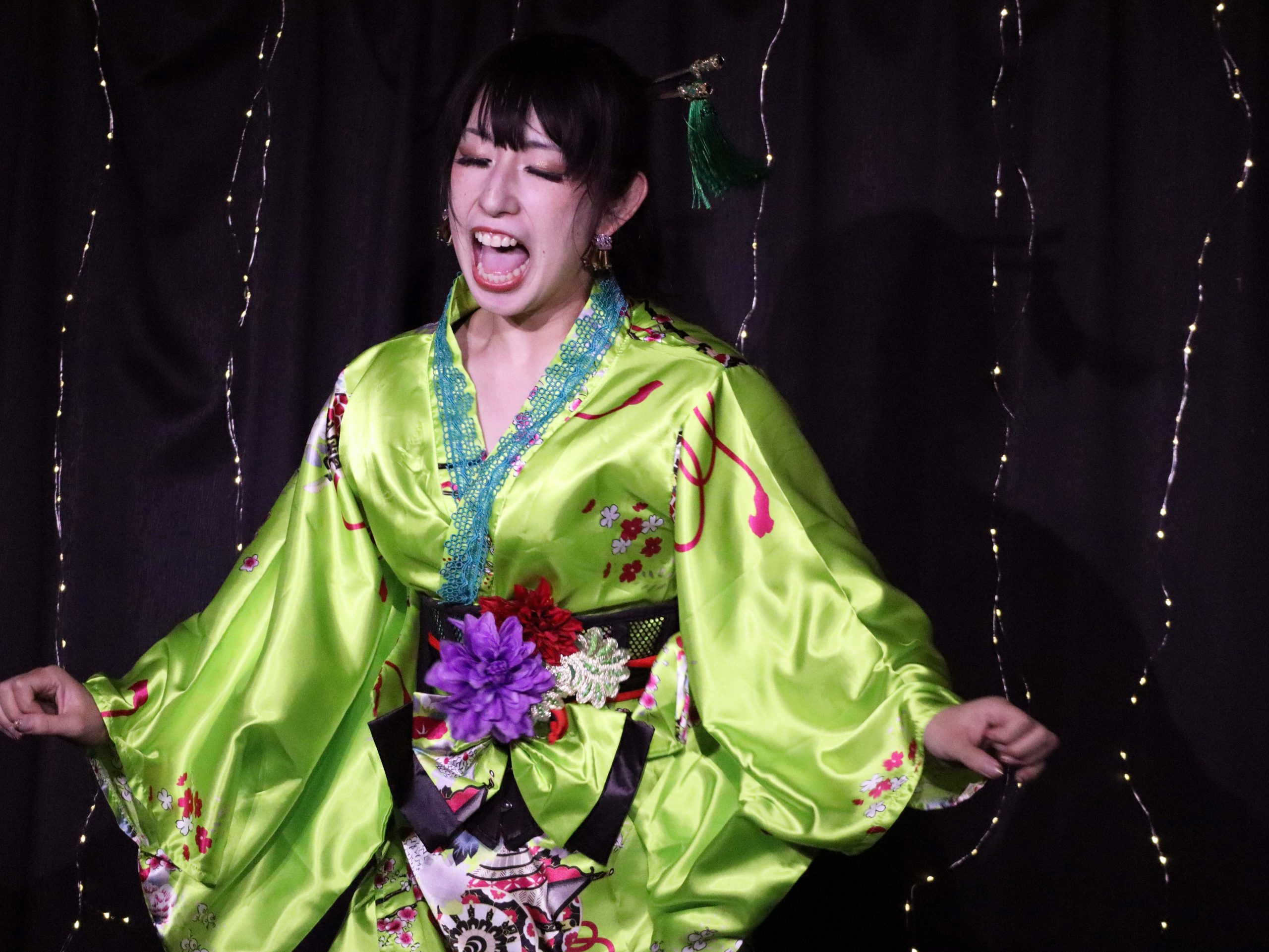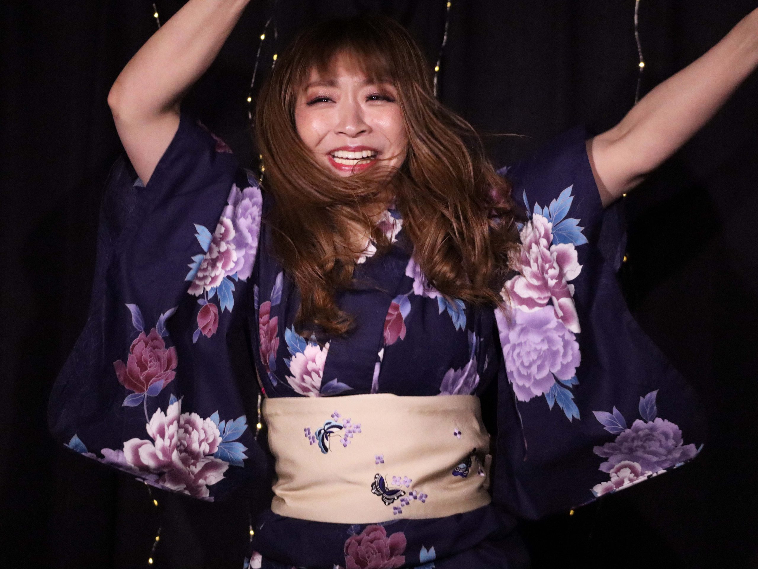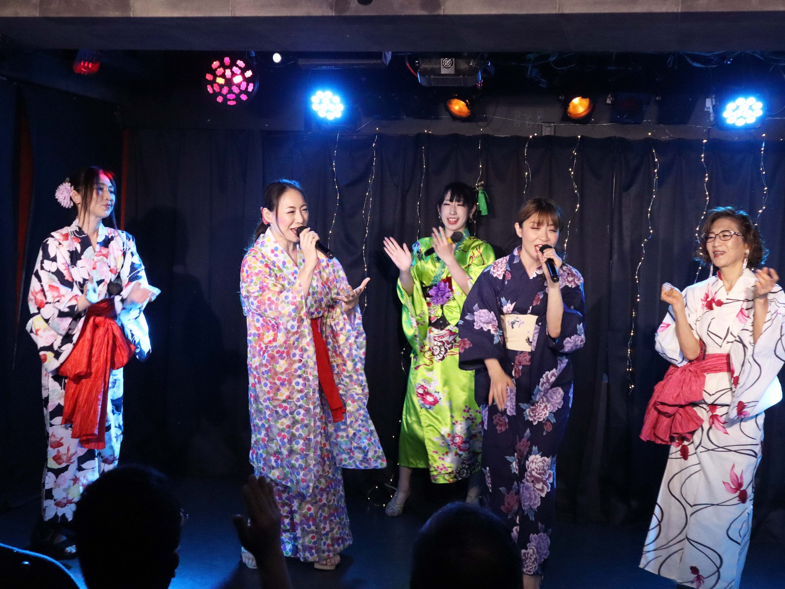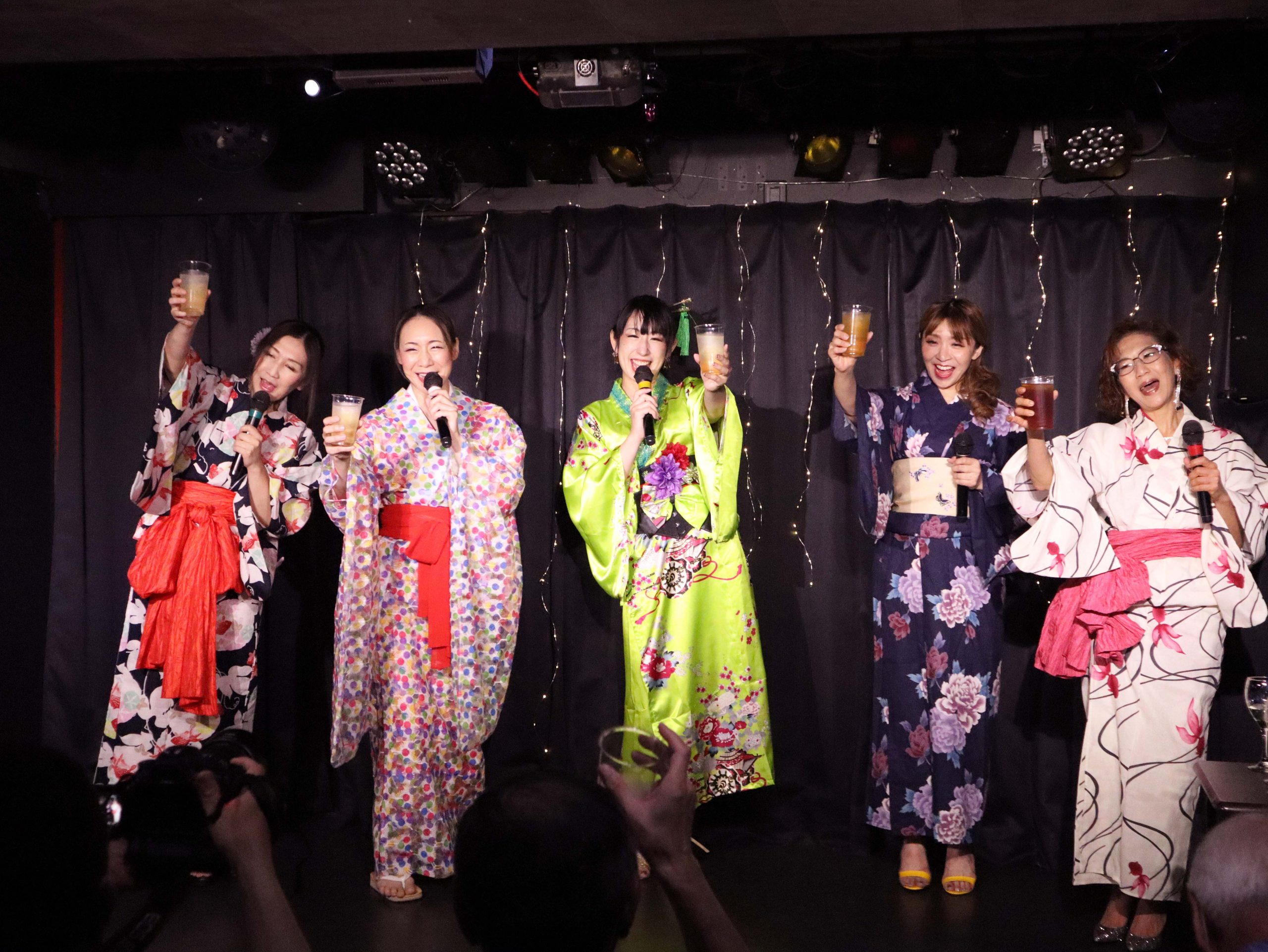 気が付くと全員がステージに上がってました(笑)。オープニングでマリーさんと伊織さんが「私たちも盆踊りで参加するかも」と宣言していましたが、こういうことだったのですね。お客様のボルテージも最高潮。まさに会場が一体化した瞬間です!