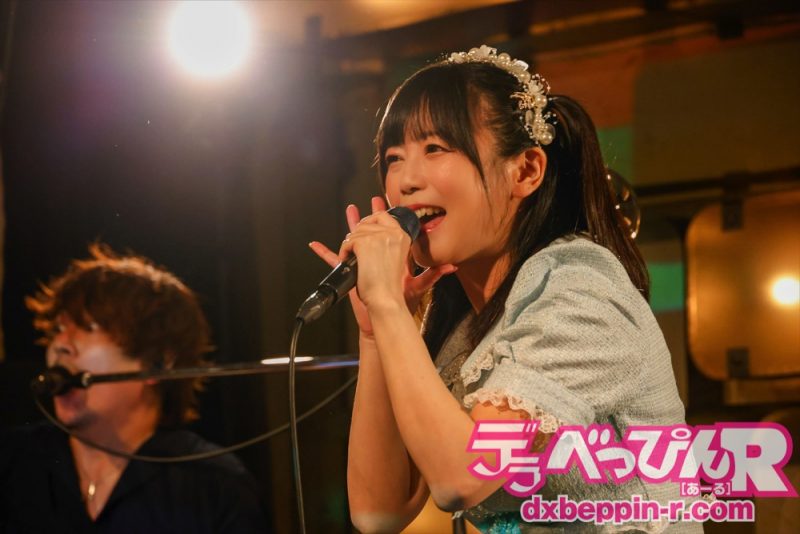 1曲目は自身のアルバム『みはるーむ』に収録されている『ふわふわ時間(タイム)』をハードなギター演奏をバックにかわいらしく歌います。轟音のギターサウンドがバンドライブの素晴らしさを強調してくれます。