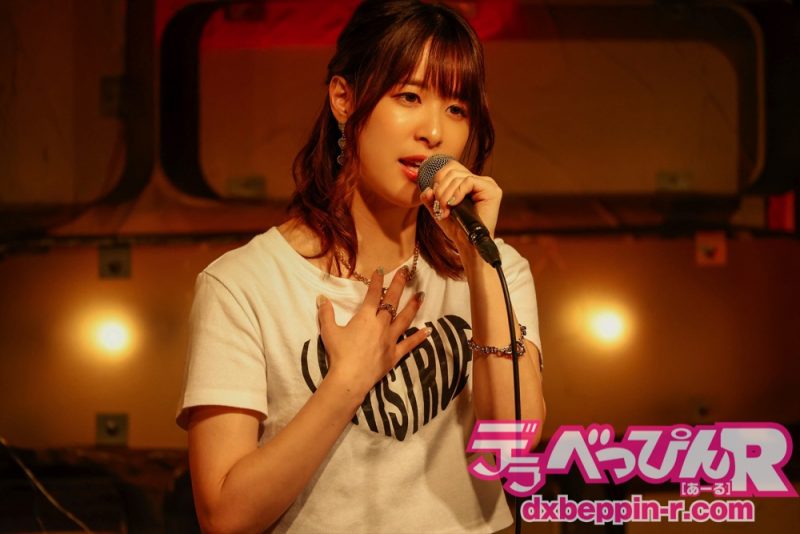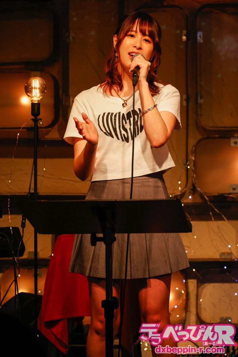 6曲目は「盛り上がる曲を歌わせていただきます」と『破滅の純情』(ワルキューレ)を全身でリズムをとりながらパワフルに熱唱し、7曲目は『ガラスを割れ』(欅坂46)をシャウトし会場を熱狂させてくれました。