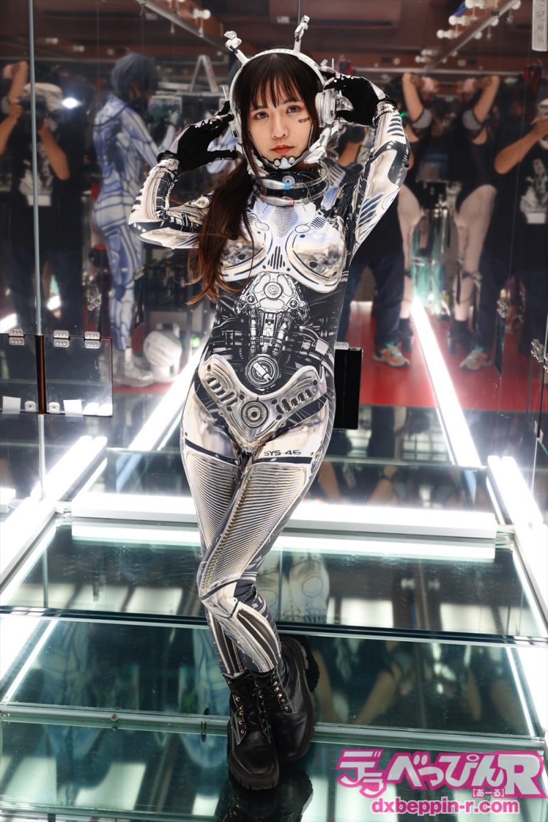 セクシー女優として大人気の宮崎リンさんは、「サイボーグの格好は初めてしました。来てみたら思っていたよりも似合っていてビックリしましたし、気に入りました。お客さんに喜んでもらえて嬉しかったです。また、次回も着てみたいです」とにこやかな表情でコメントしてくれた。