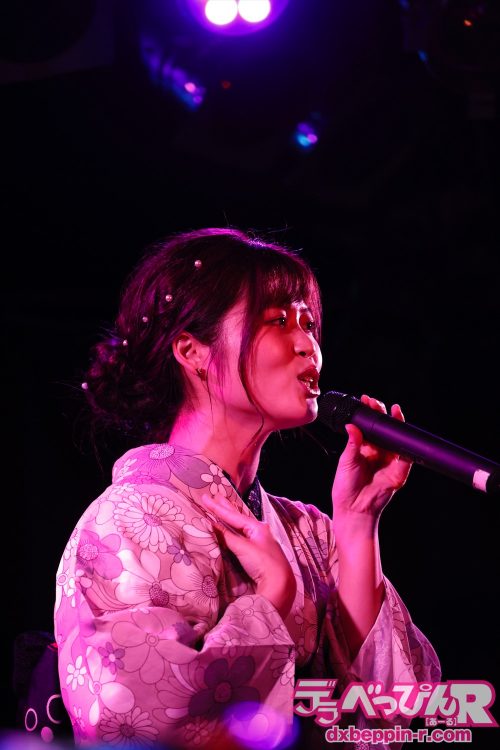 夏休みスペシャルライブらしく浴衣姿で登場した望月あやかちゃんは妖艶な雰囲気がムンムン! 昭和アイドルのビッグヒット曲から演歌まで美声を響かせて完璧に歌ってくれました。