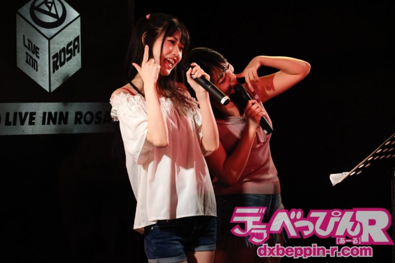 ともにソフト・オン・デマンドの「もぎたて」レーベルからデビューする白花のんちゃんと吉川瞳美ちゃんも同ライブには初登場です。「めっちゃドキドキする」と言いつつもアニメの劇中歌などを2人で堂々と歌ってくれました。
