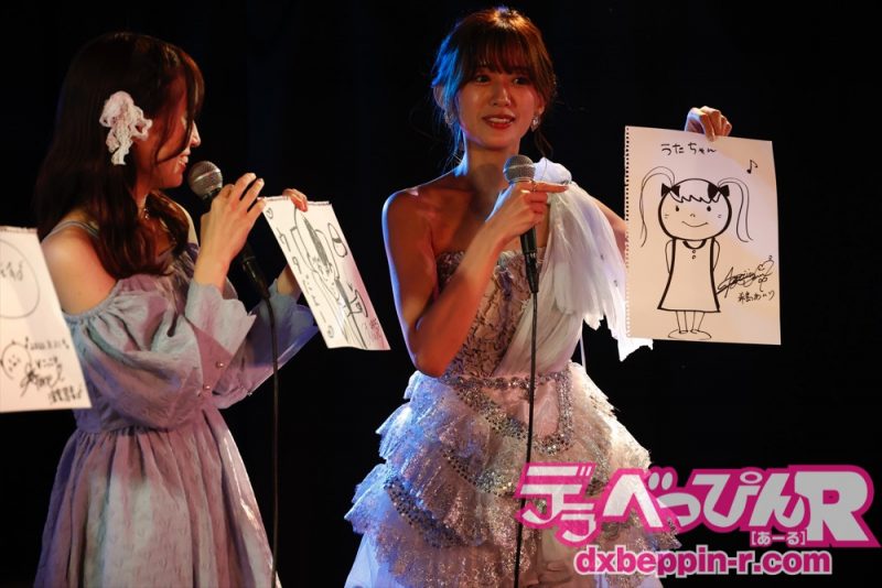 ここで前半は終了し、同ライブ恒例の「お絵描きタイム」に突入します。お題に出されたマンガのキャラクターをなにも参考にしないで描くのですが、今回は多くの出演者が苦戦。しかし、未歩ななちゃんがかなり似ているキャラクターを描いてくれました。