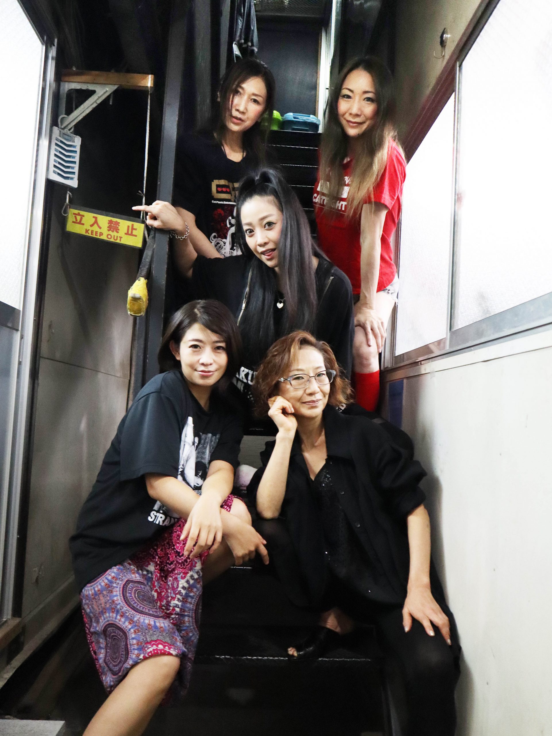 仕置き人・三代目葵マリーさんを先頭に、美女ファイターたちが気合十分の表情で勢揃い!いざ、興行に出陣!