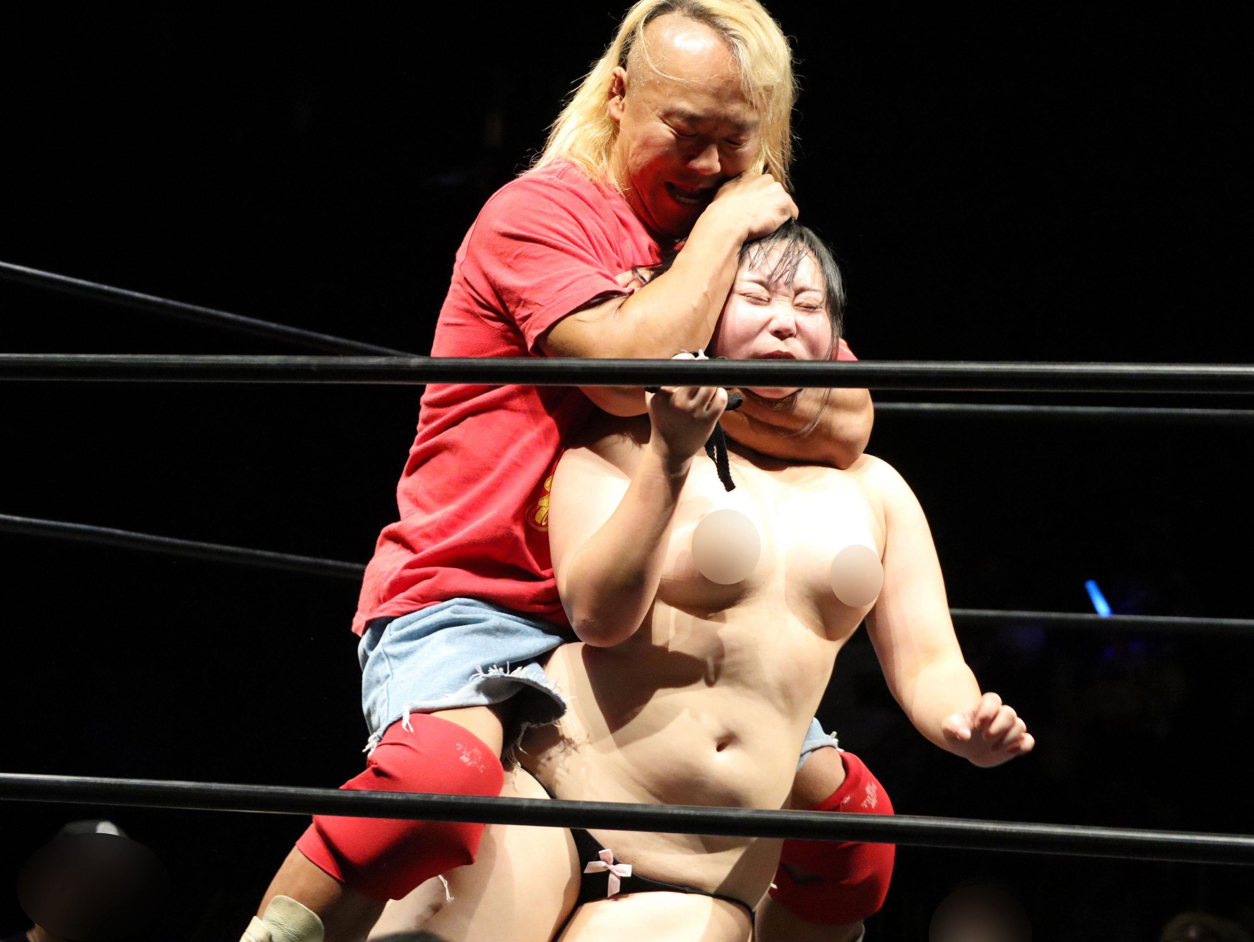 しかし、今回は初の試みとなる「イラ〇チオ方式」。ファイターが積極的に攻めることは許されず、バナナおじさん・木原文人とレスラー・大和ヒロシにされるがまま、完全受け身にならなければいけません!抵抗したり自分から攻めたりするとポイントはマイナスになってしまいます。