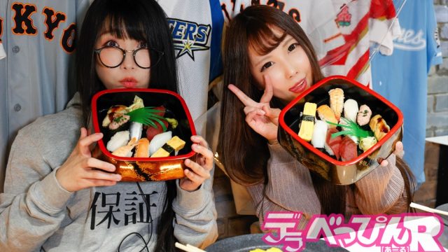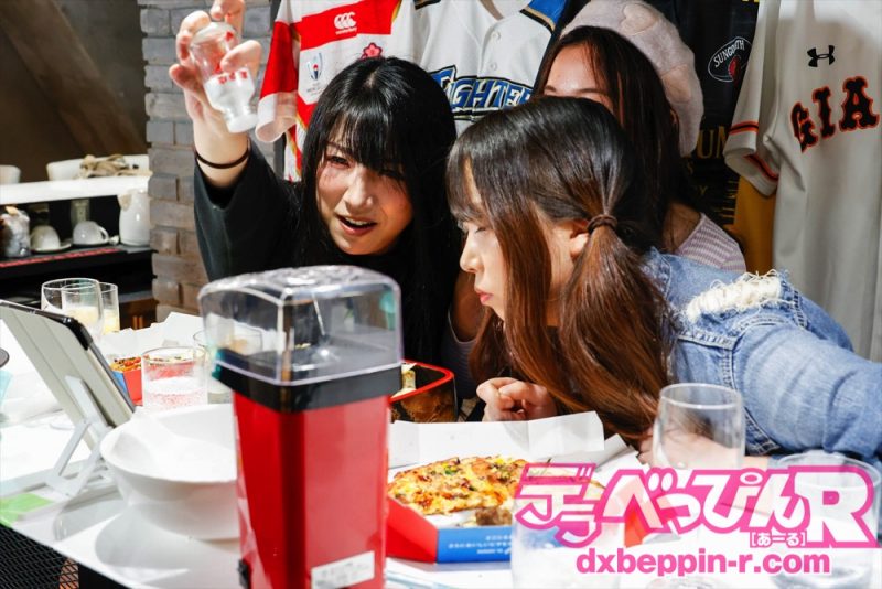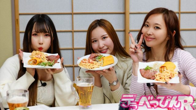 またまたトークは展開し、恒例のAV撮影話になります。みひなちゃんが「母親役はまだ来ない」と言うと、くるみちゃんは「この前、スクール水着を着た」と言います。さらにはイカ臭いがワードの中心となり、「高校の時、教室がイカ臭かった」とみひなちゃんが言うと、芽愛里ちゃんはごっくん話に発展させ、「ごっくんモノに出たら、全部精子の匂いがするし、ミルク系の入浴剤を入れると精子に入っている感じになる」と飲食をしながら精子話で盛り上がります。
