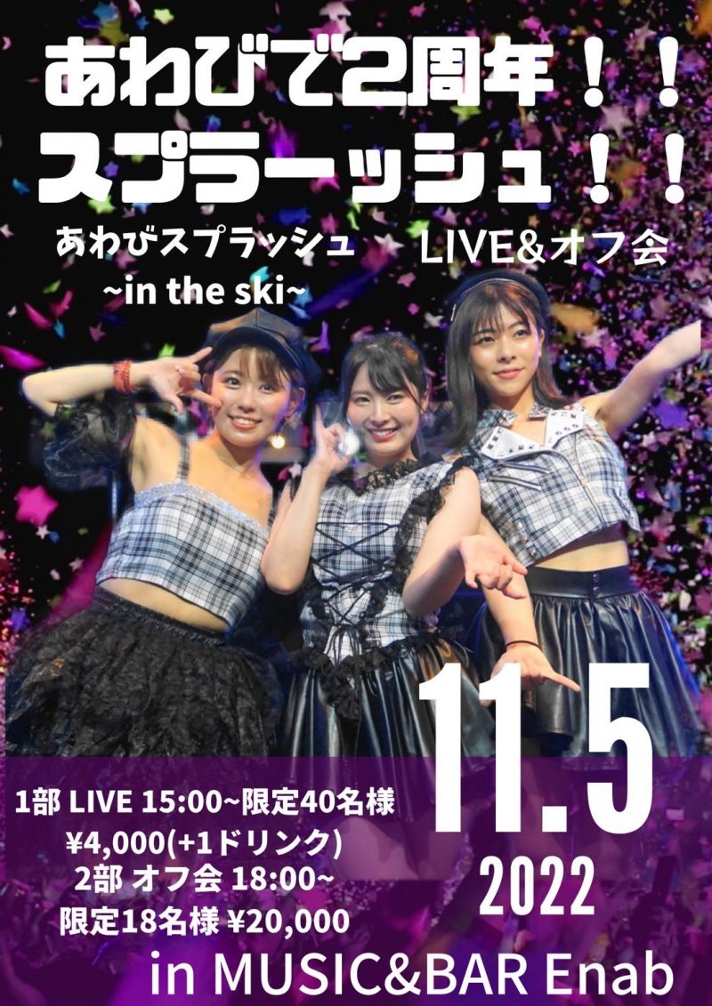 あわスプ初の主催で開催するライブは11月5日、赤羽のミュージックBar/Enabさんにて開催。1部がライブ、2部がオフ会で同じ敷地内だから移動も楽々ちんちんです。