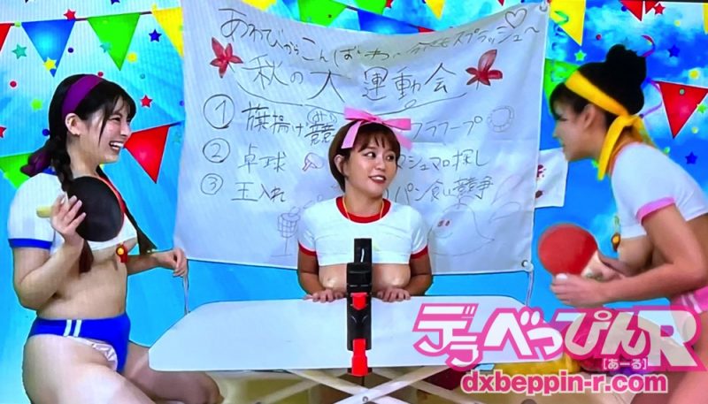 今回の運動会のテーマは、旗揚げ競争、卓球、玉入れ、フラフープ、マシュマロ探し、パン食い競争の6種目。90分の生放送で6種目だから大忙しな進行。