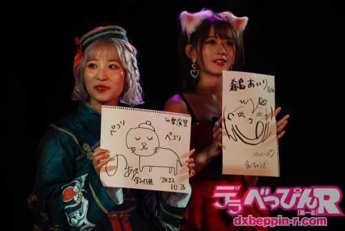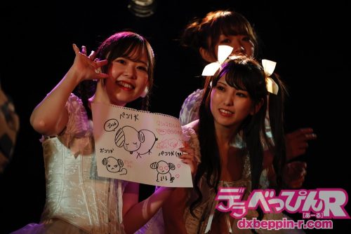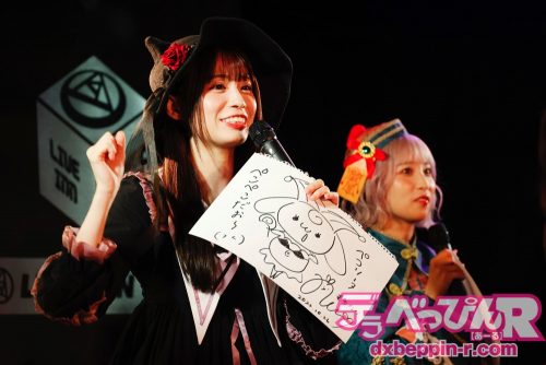 ここで前半は終了し、インターバルの「お絵描きタイム」に入ります。お題に出されたアニメなどのキャラクターを描くのですが、今回はそのキャラクターがあまり浸透しておらず、全員が独自の絵を描いてくれました。これらの絵はジャンケンでファンへ贈られますので、会場へ足を運んでイラストをゲットしましょう。
