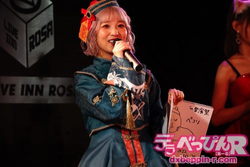 同ライブの常連である夕美しおんちゃんは迫力ある歌声でロックナンバーとアイドル曲を歌ってくれました。声出しOKになり声援が飛ぶと、「活気が戻って来て嬉しい」と喜びをあらわにします。