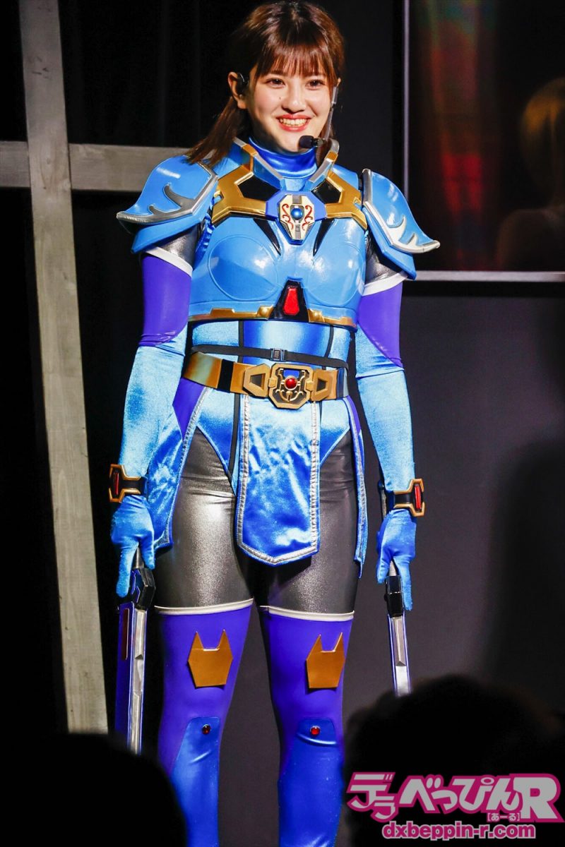 今回は同ライブの第2部を取材、東條なつちゃん(オーロラ)、若宮穂乃ちゃん(スパンデクサー)、春日えなちゃん(レイザーミカゲ)、音琴るいちゃん(パワーウーマン)、辻さくらちゃん(チャージフェニックス)がステージに登場し、悪の怪人たちとアクションを展開しました!