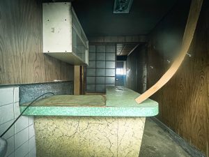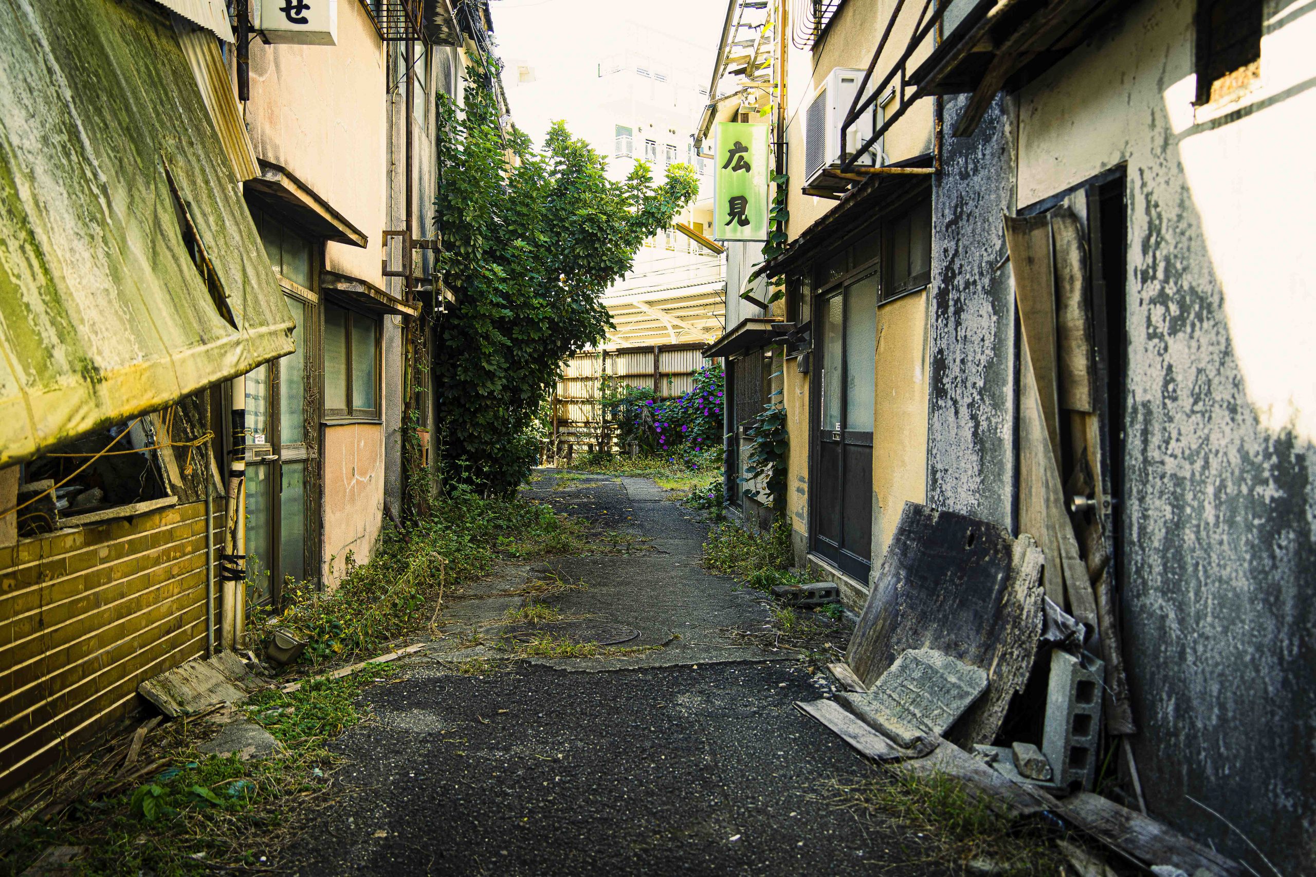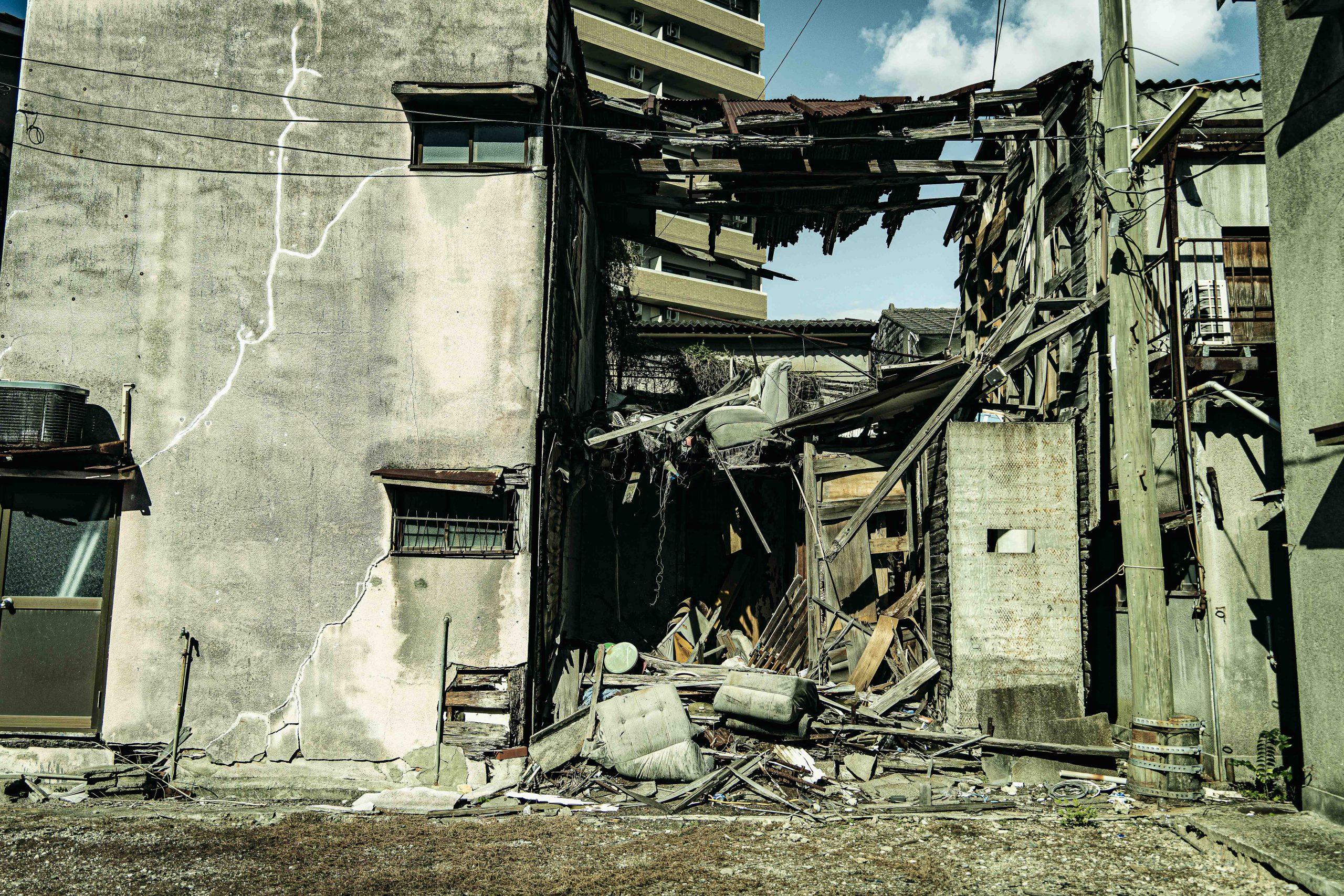 外には廃材が放置され、現代から置き去りにされたような場所。