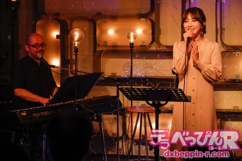 鳴り止まないアンコールの拍手の中、再びステージに戻ると、「ありがとうございます。あっという間ですね。早いなあ」とコメントし歌うことの喜びをかみしめながら、「私が歌える機会を作ってくださったことが嬉しいですし、ピアノとギターの演奏で歌えてとても楽しくてハッピーなひと時を過ごせました」と『未来予想図II』(DREAMS COME TRUE)を伸びやかな歌声で聴かせてくれライブを終えました。